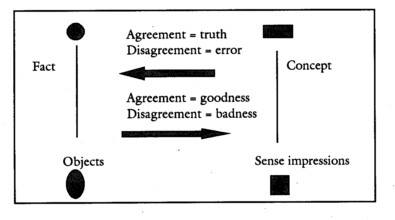 So our ability to evaluate and to think in terms of good and bad is part of our ability to understand. But in ordinary understanding, (which gives us truth and mistakes), the facts are taken as the "independent variable," as it were, and understanding is what has to "bring itself into conformity with" the facts in order for understanding not to be mistaken and truth to occur.